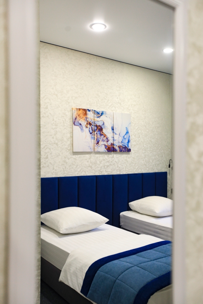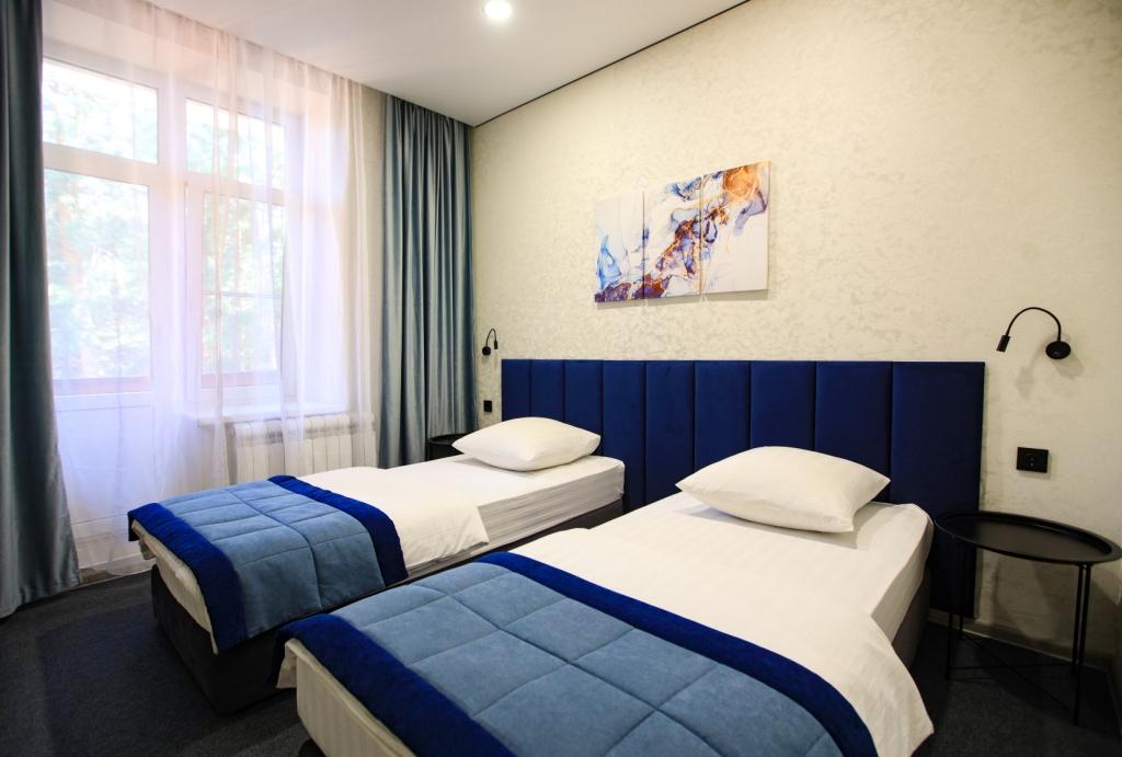 Стоимость проживания: - при двухместном размещении 4300 (завтрак включен) или 5500 (с завтраком и ужином) на двоих. - при одноместном размещении 3000 (завтрак включен) или 3600 (с завтраком и ужином). Компактный двухместный номер отлично подойдет для командировки или деловой поездки. Номер может быть оборудован по Вашему пожеланию одной двуспальной или двумя одноместными кроватями. Отчетные документы предоставляются. В номере есть все удобства: санузел (туалет, раковина, душ), по 3 полотенца на гостя, косметические одноразовые принадлежности, фен, кондиционер, ТВ, Wi-Fi, электрический чайник, чай и кофе. В номере есть минибар (оплачивается отдельно по прайсу). Номер на первом этаже. В общем доступе имеется гладильная доска, кулер с водой, микроволновка. При длительном проживании проводится ежедневная уборка, ежедневная смена полотенец, смена постельного белья - раз в три дня. На территории гостиницы есть парковка. В стоимость номера включен завтрак. Завтраки с 7:00 до 09:00 - шведский стол. Также предлагаем гостям комплексные ужины с 19:00 до 21:00. Досуг за доп.плату: баня, чан, бильярд, мангал.